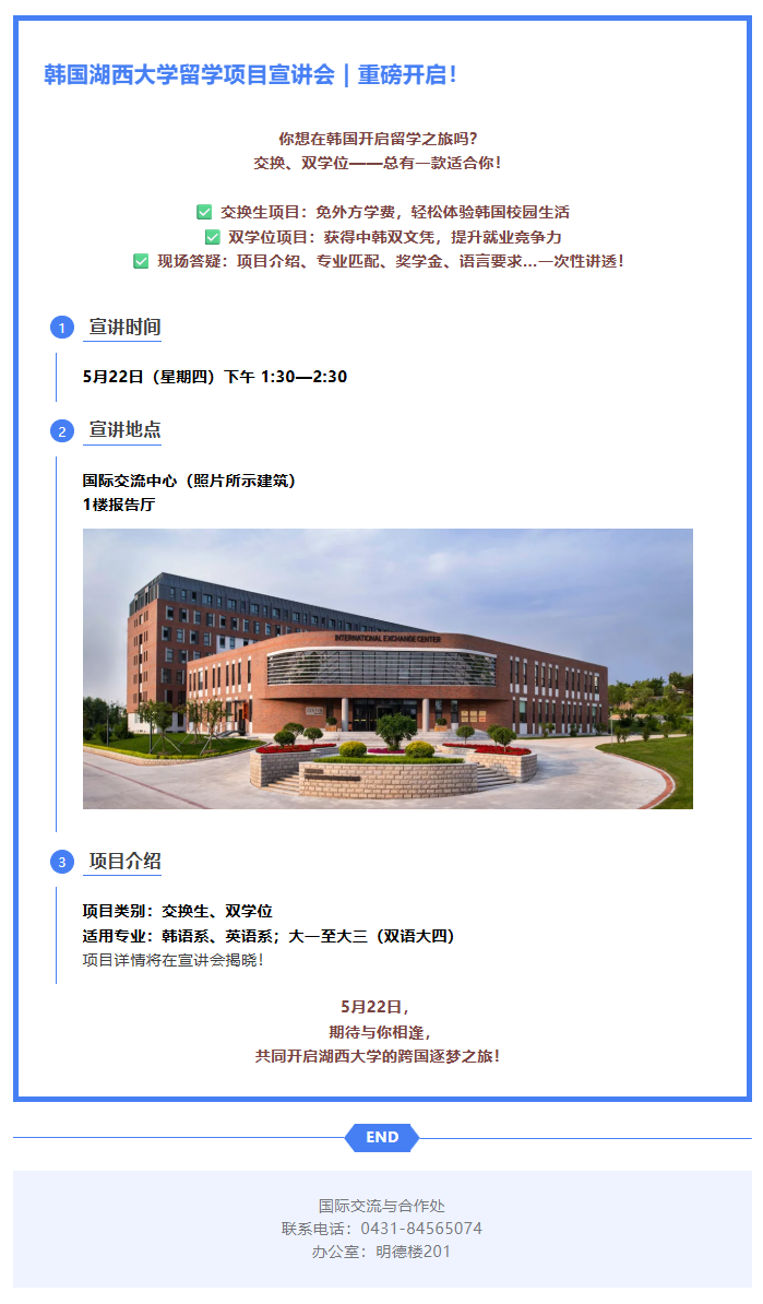关于韩国湖西大学交换生&双学位项目宣讲会的通知