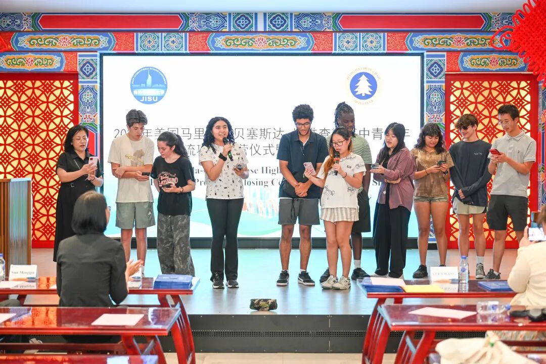 近日,“吉外国际研学营”美国马里兰州贝塞斯达-切维查斯高中青少年交流项目结营仪式在地球村中国村举行。