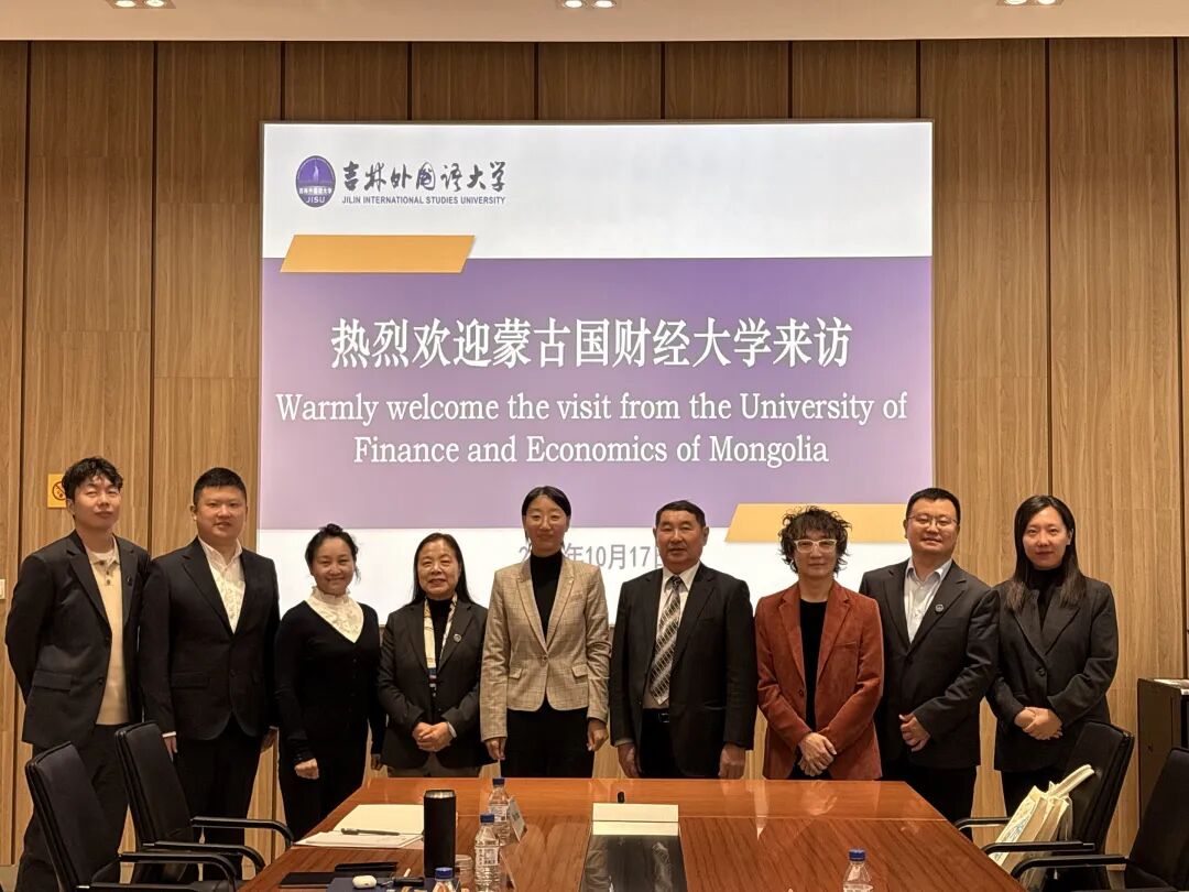 近日,吉林外国语大学与蒙古国财经大学国际合作交流会议在国际交流中心举行。蒙古国财经大学国际学院副院长兼国际关系办公室主任Khavartsetseg.E、跨学科系教授 Batkhuyag.G、研究生院教授 Sukhbaatar.J,吉林外国语大学国际交流与合作处处长宋丹丹、国际交流学院领导、国际商学院副院长赵梓翔以及相关专业负责人参加会议。