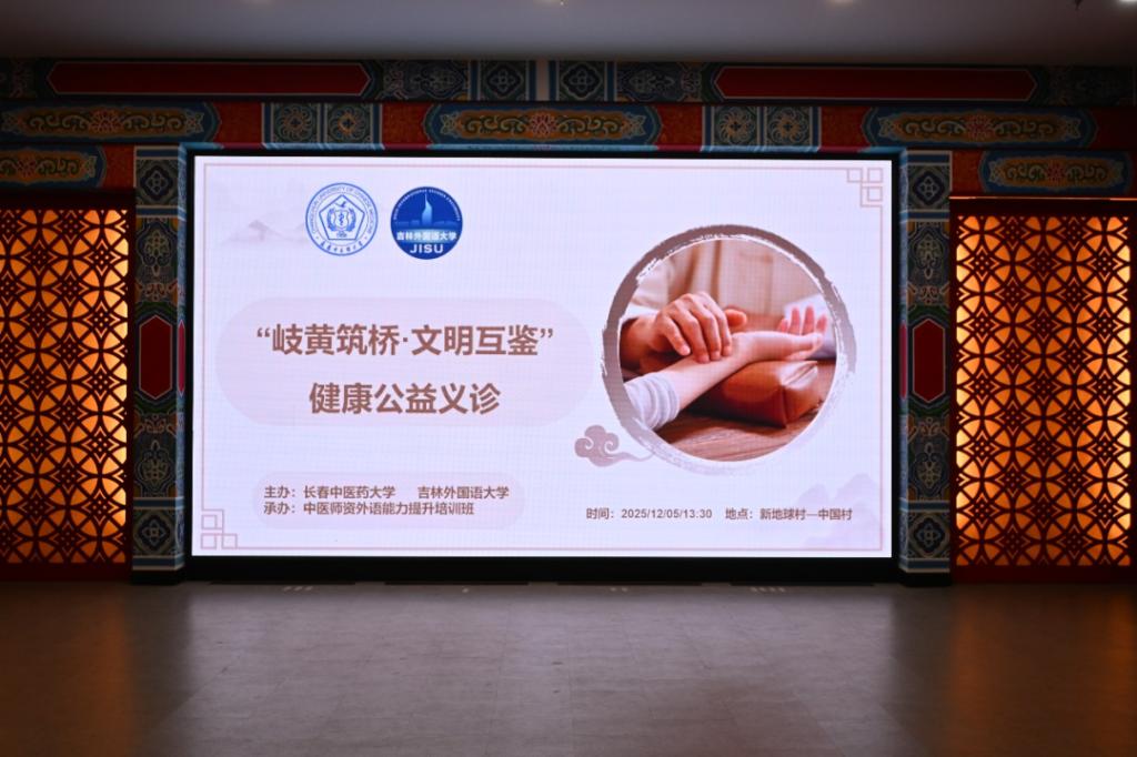 12月5日,“岐黄筑桥・文明互鉴”健康义诊活动在吉林外国语大学地球村举行。16名中医教师用外语为300余名外籍师生把脉问诊、针灸推拿,介绍中医药文化。