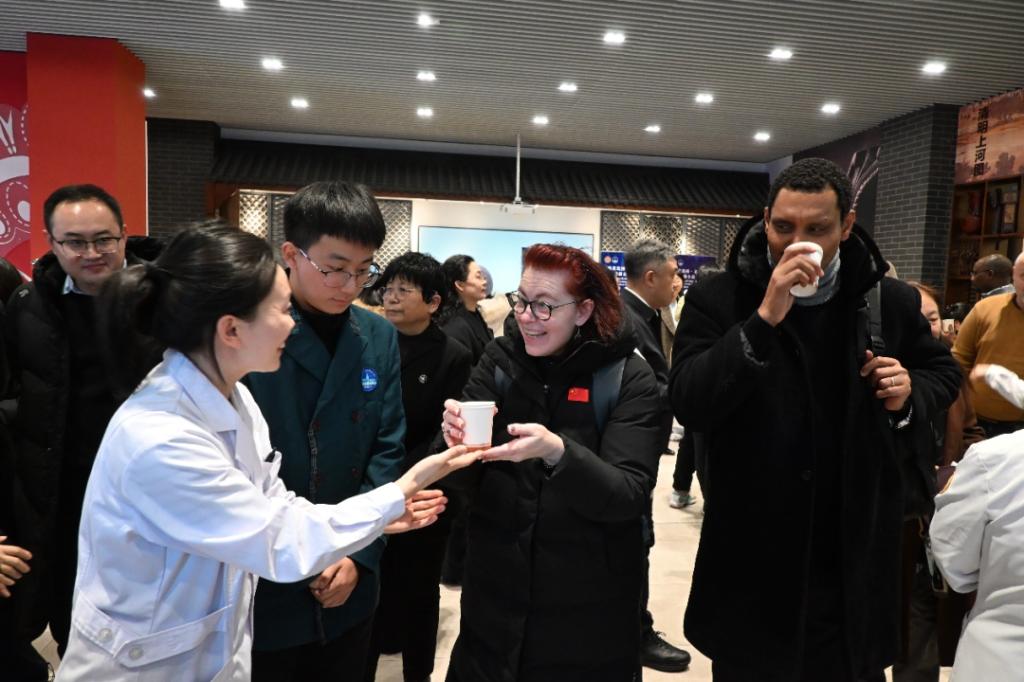 在养生茶饮区,中医教师们精选多种药食同源食材熬制不同功效的茶饮,让外籍师生们品鉴,介绍中医药食养文化如何自然地融入生活。