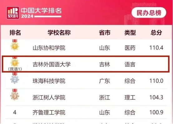 在软科中国民办高校总榜排名中