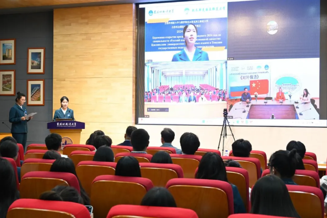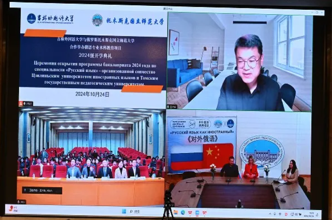 10月24日下午,吉林外国语大学与俄罗斯托木斯克国立师范大学合作举办的俄语专业本科教育项目2024级新生开学典礼在图书馆四楼报告厅举行。典礼在俄罗斯托木斯克国立师范大学设立分会场,采取线上线下同步的方式进行。