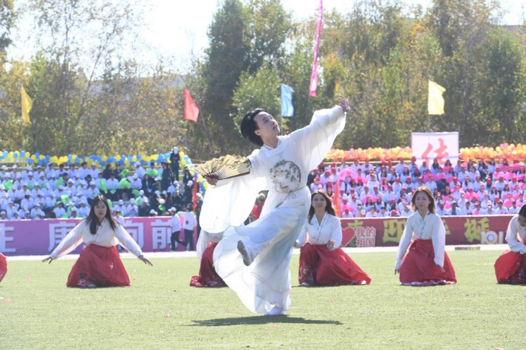 陈汉在吉林外国语大学第二十四届田径运动会上表演中国扇子舞