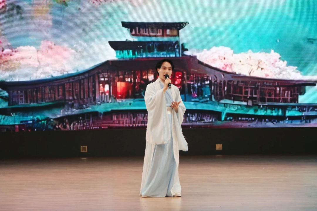 陈汉在吉林外国语大学第十一届读书节启动仪式上表演诗朗诵