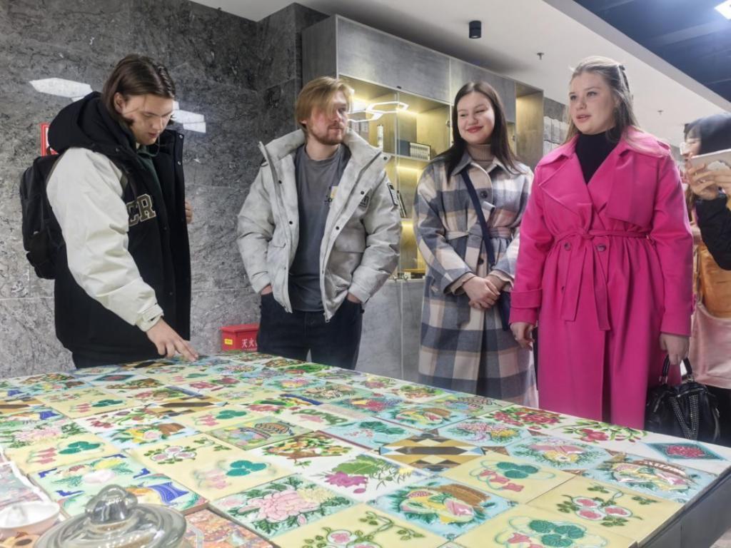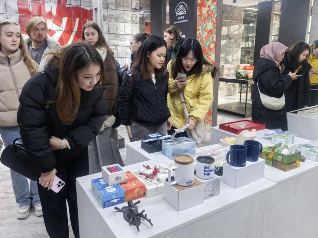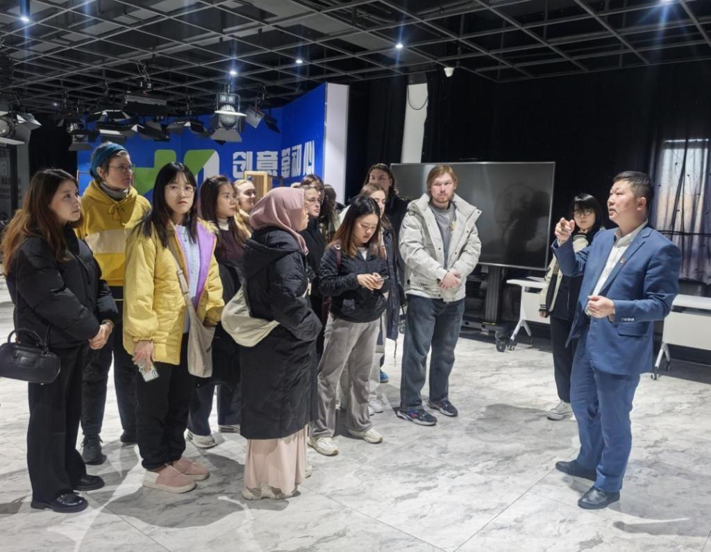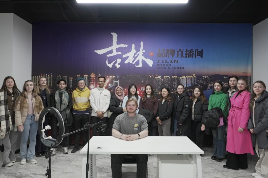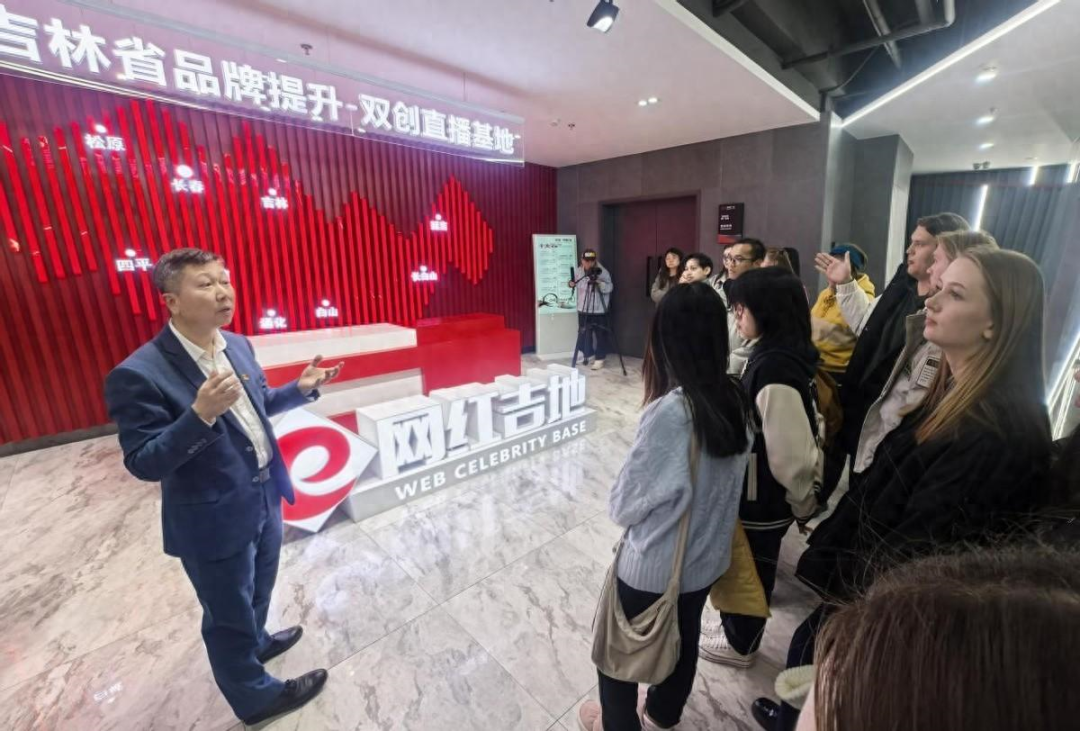 在网红吉地工作室,留学生参观了吉林省各地的特色产品直播展厅,详细了解各个展厅的功能属性,亲身感受吉林省电商蓬勃发展和数字赋能的生动实践。