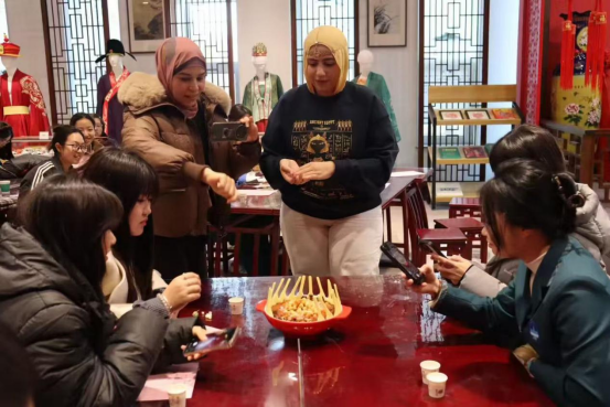 互动环节中,外国留学生的特色舞蹈与委内瑞拉Chicha饮料、埃及Koshary美食分享,让食物香气与文化故事交织,传递多元温情。西班牙语2401班徐向楠表示,交流会让每一张餐桌都成为微缩世界,通过此次活动拓宽了全球视野,进一步深化了文化认知。