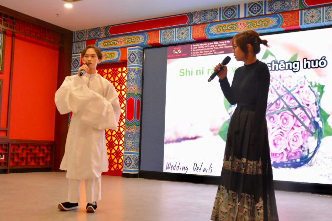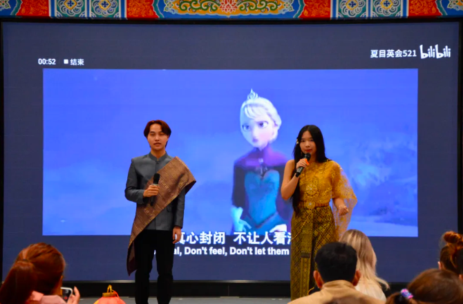 来自老挝的陈汉和泰国的李佳梦合唱了歌曲《Let it go》,国际学生阮进都、杜氏春心合唱了歌曲《有点甜》,为现场增添了节日气氛。