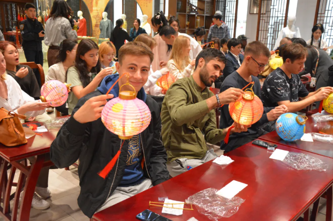 活动中,外籍师生们了解了中秋节的由来和风俗习惯,学习制作灯笼和祝福卡片。