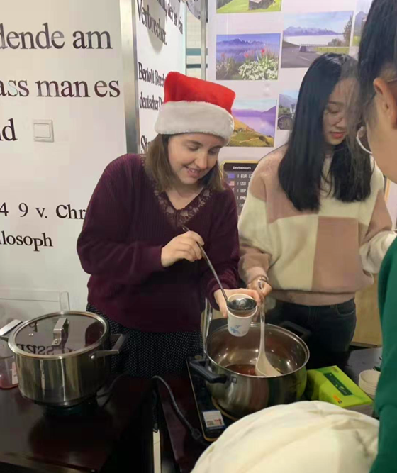 安娜开设德国饮食文化体验课,与学生们一起制作德国美食。